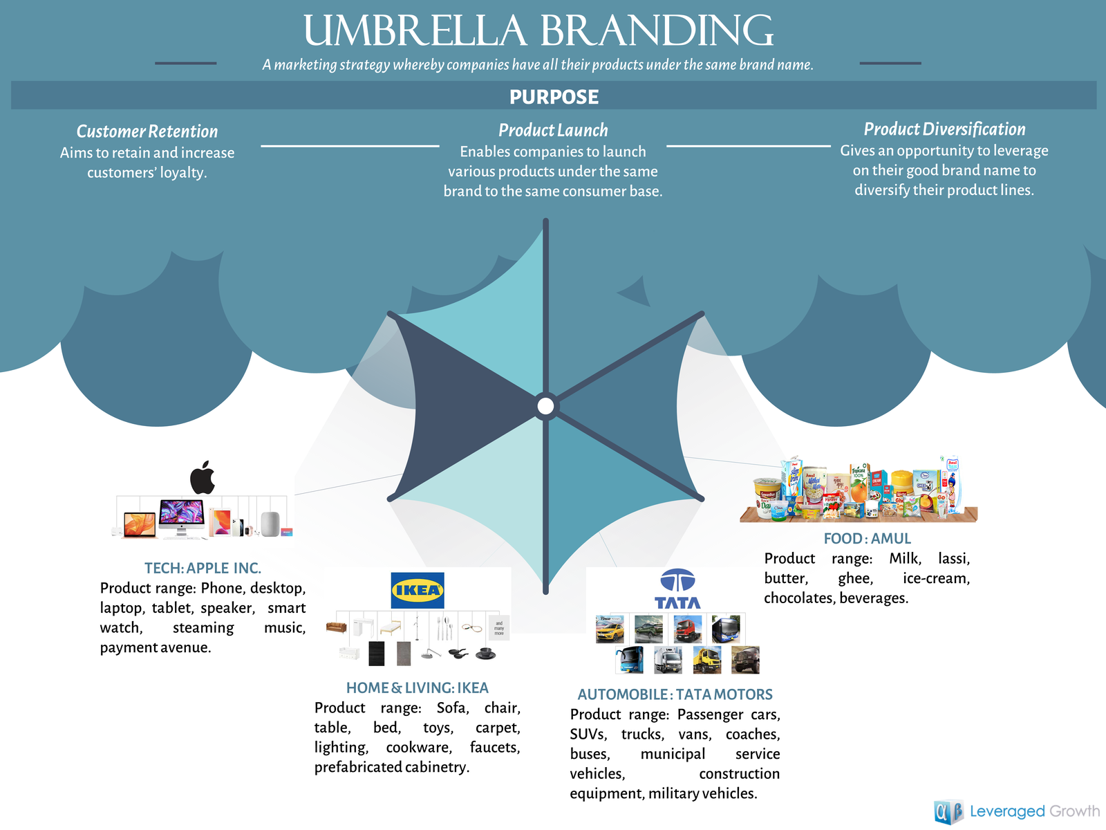 Umbrella branding enables companies to launch a variety of products under the same brand name. Consumers often prefer purchasing from a known