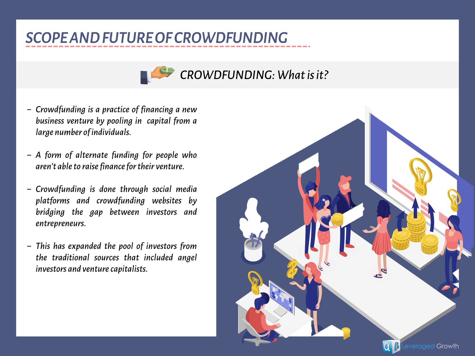 Crowdfunding- What is it? Crowdfunding is a practice of financing a new business venture by pooling in capital from a large number