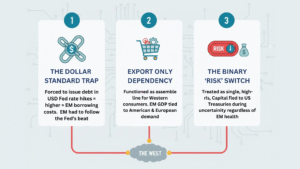 To appreciate the current decoupling, one must first understand the gravity that kept Emerging Markets grounded for so long. For decades, EM economies were tethered to the West by three structural chains.